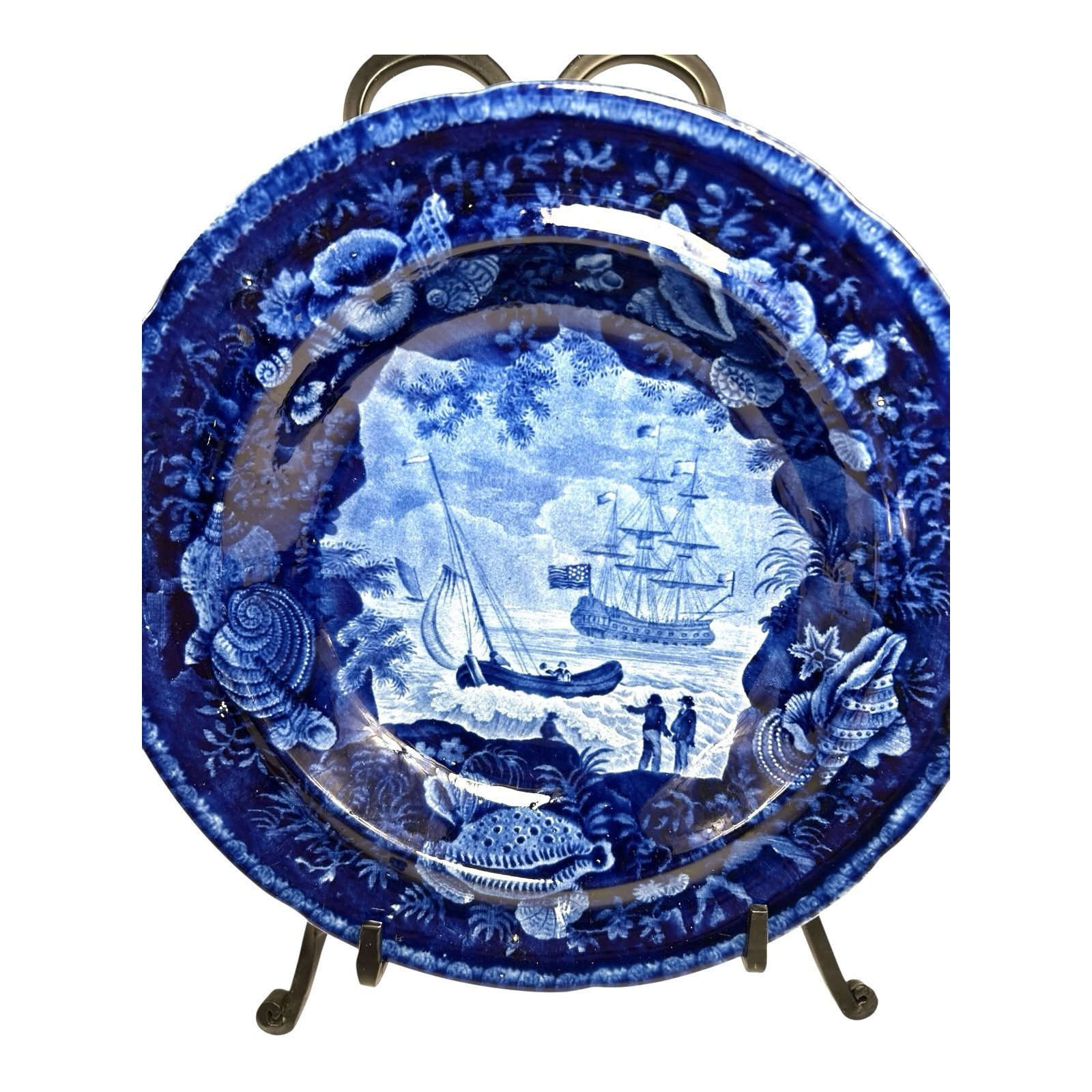 Antique Staffordshire Blue Transferware Historical Bowl Ship Cadmus – Lafayette