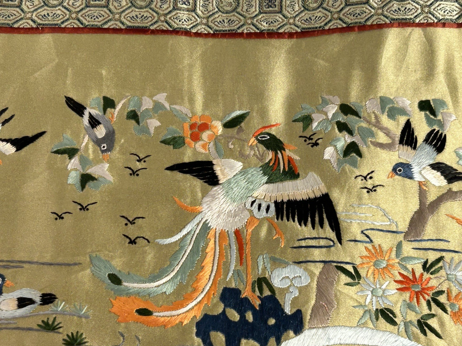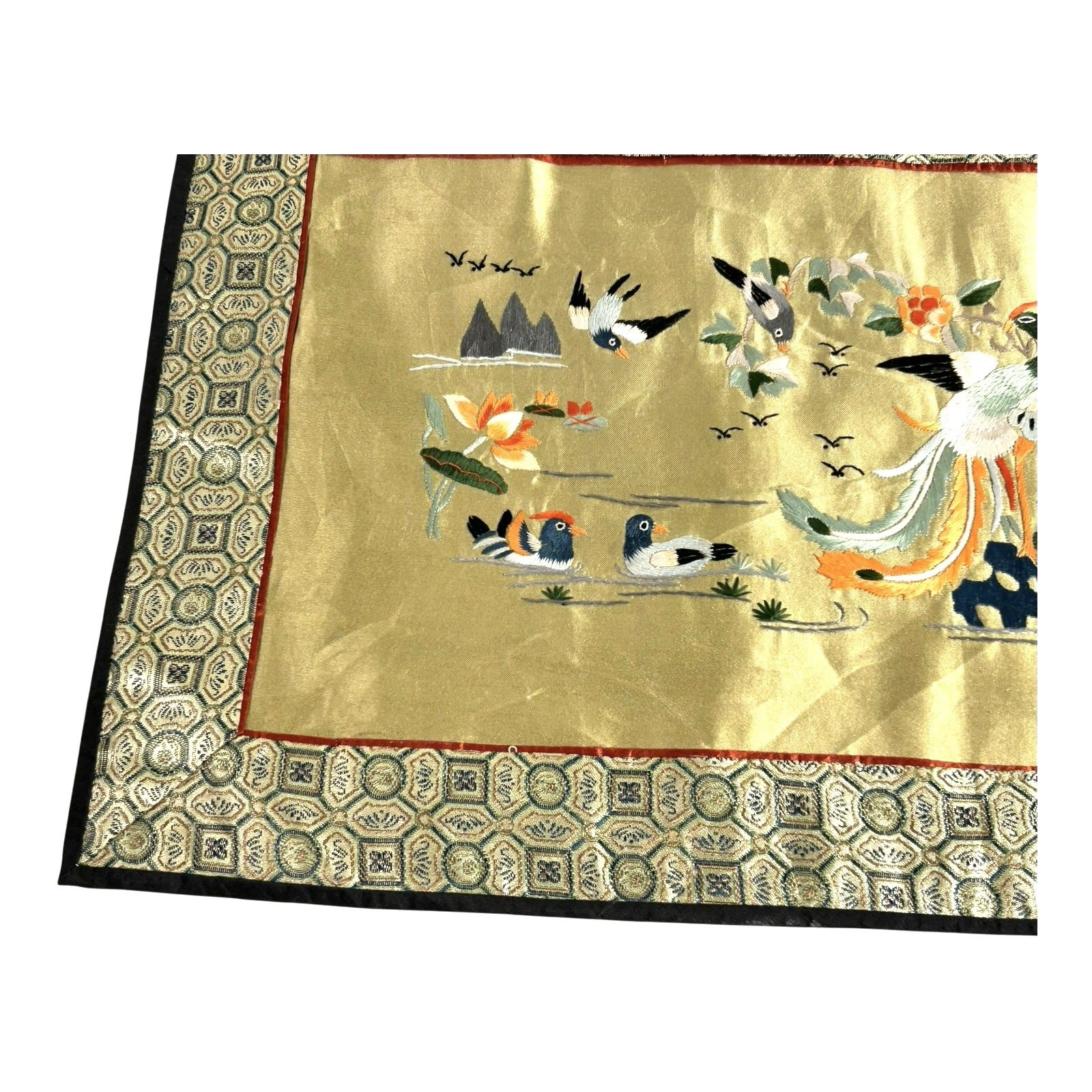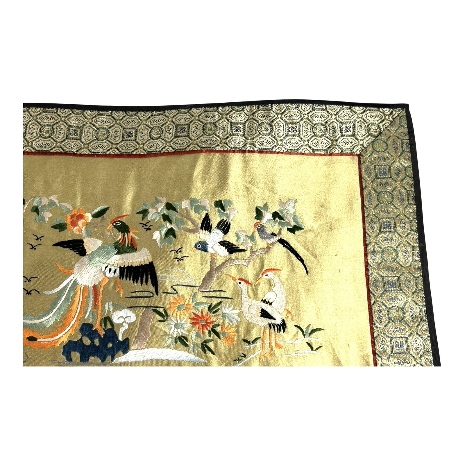 Antique Chinese Silk Hand Embroidered Textile Wall Hanging – Bird Design