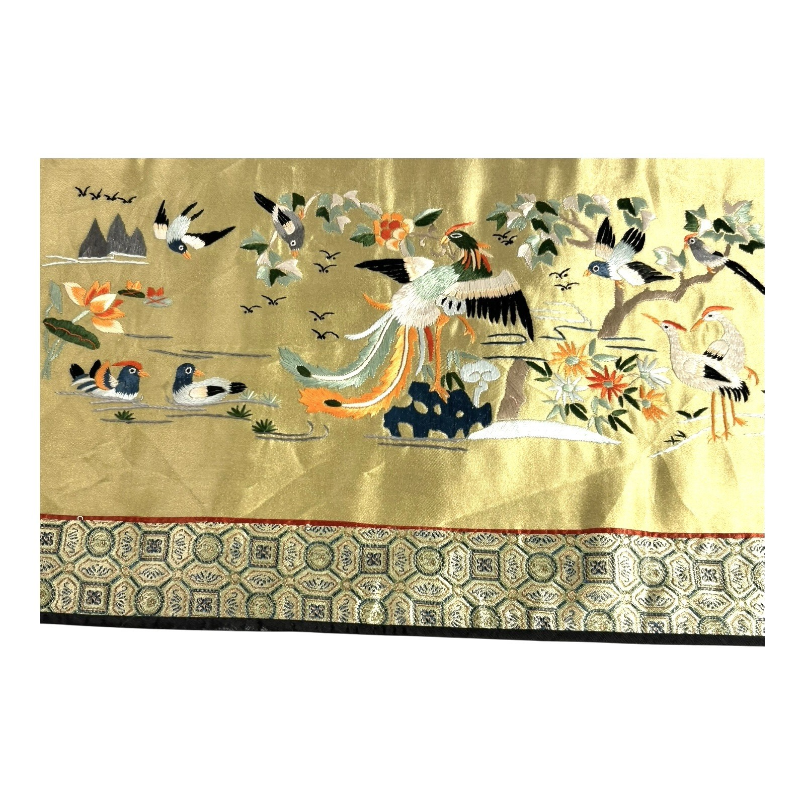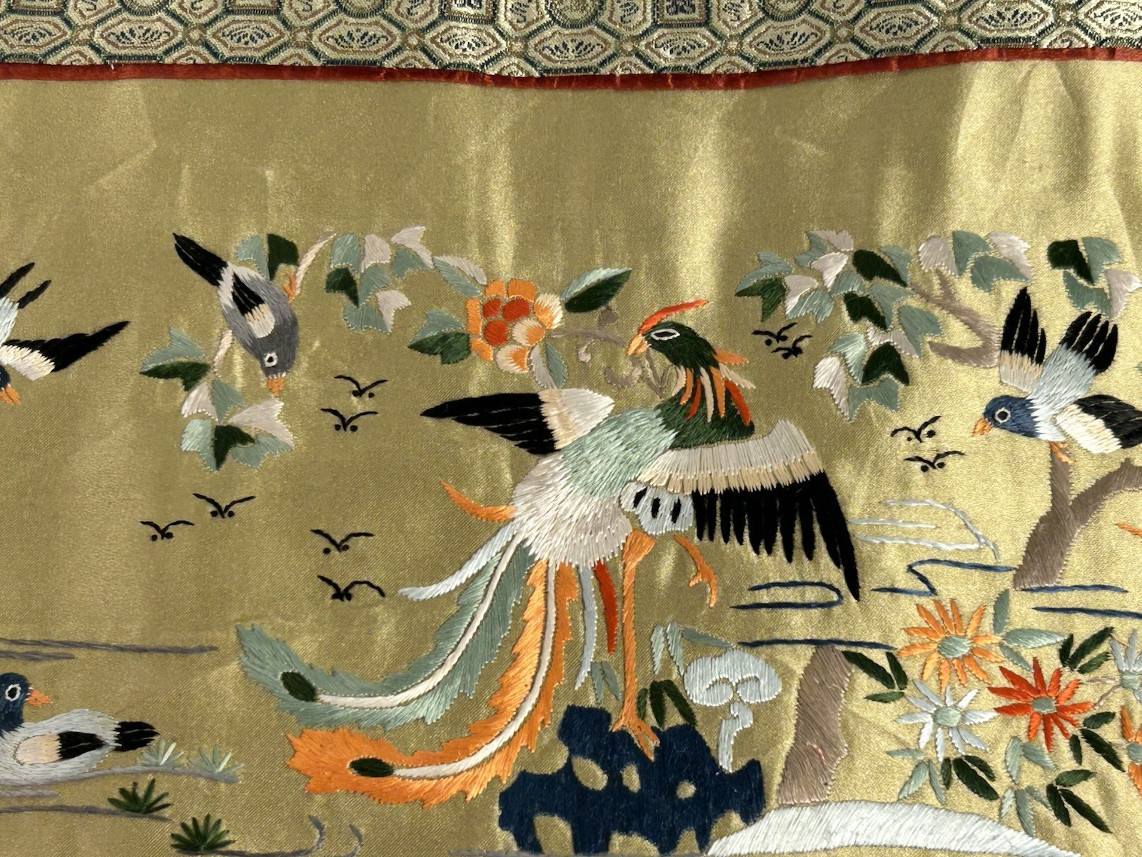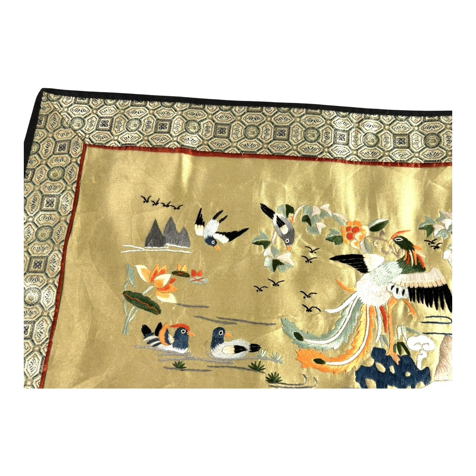 Antique Chinese Silk Hand Embroidered Textile Wall Hanging – Bird Design