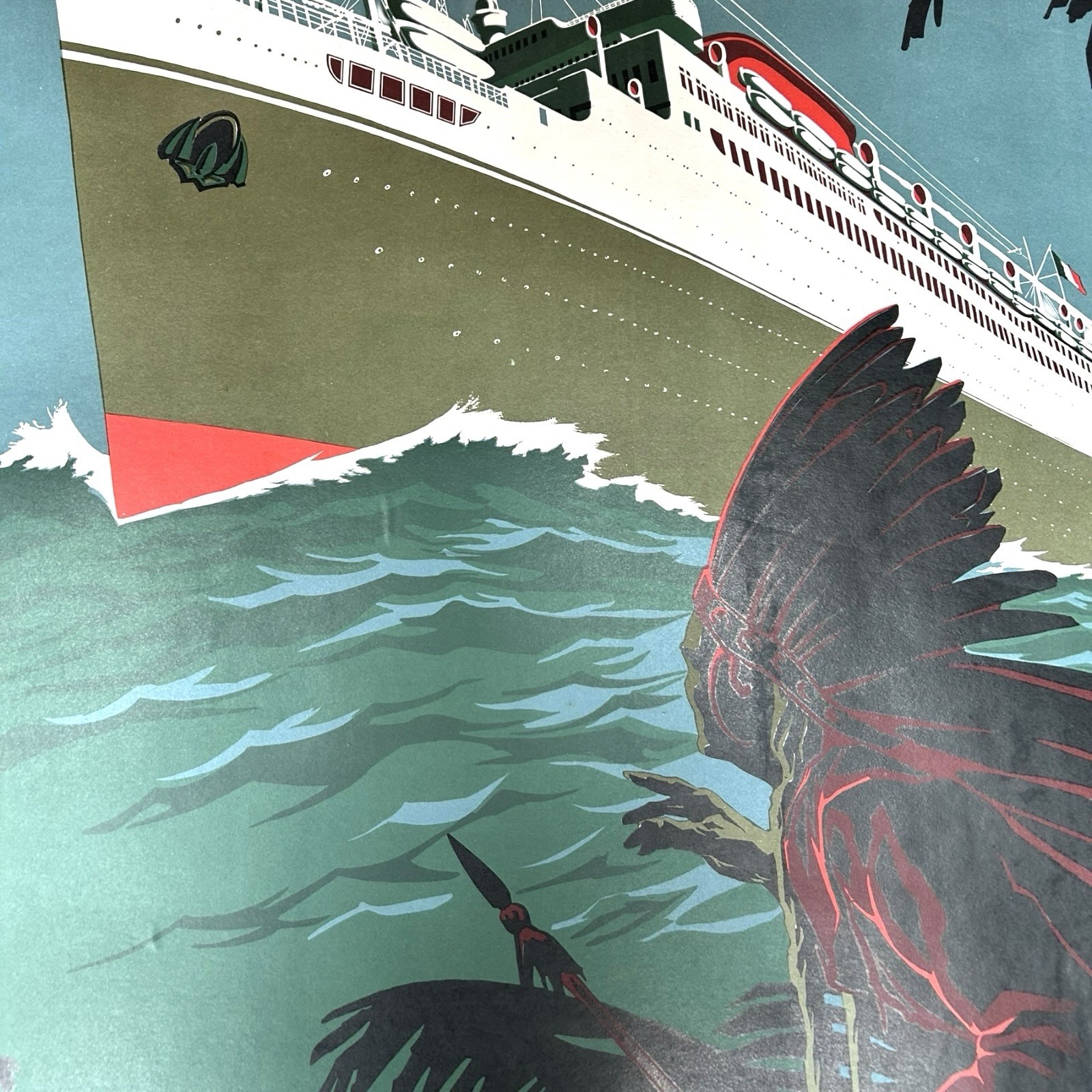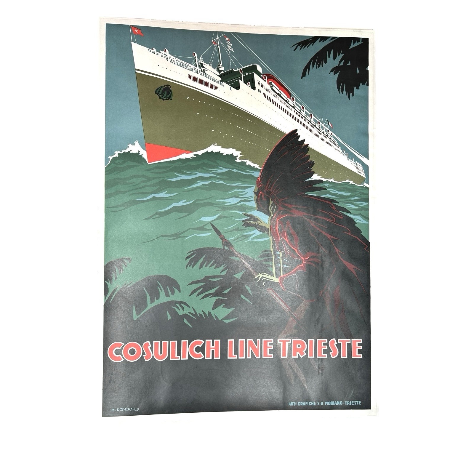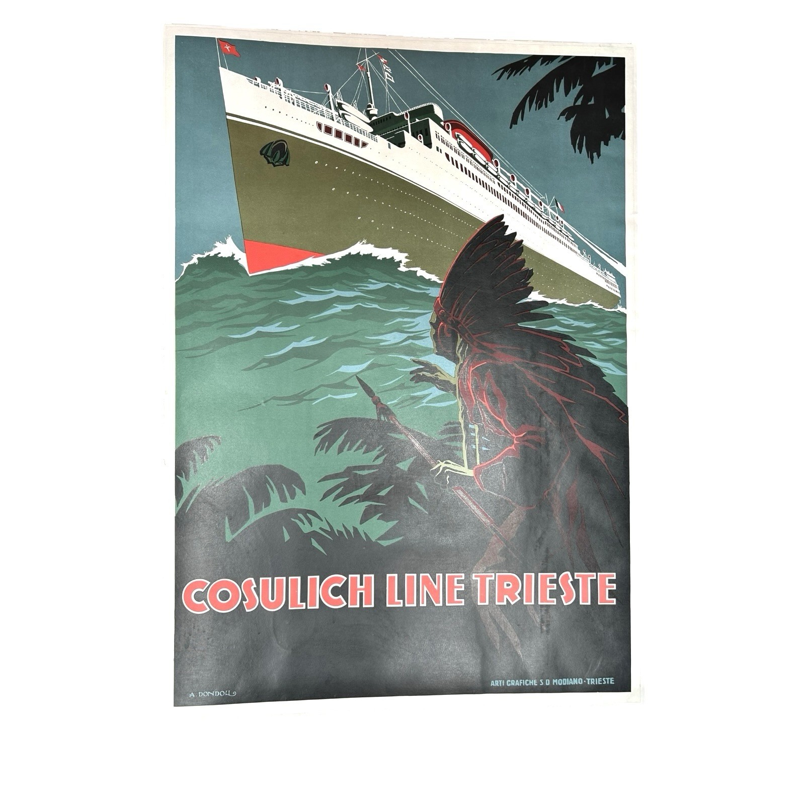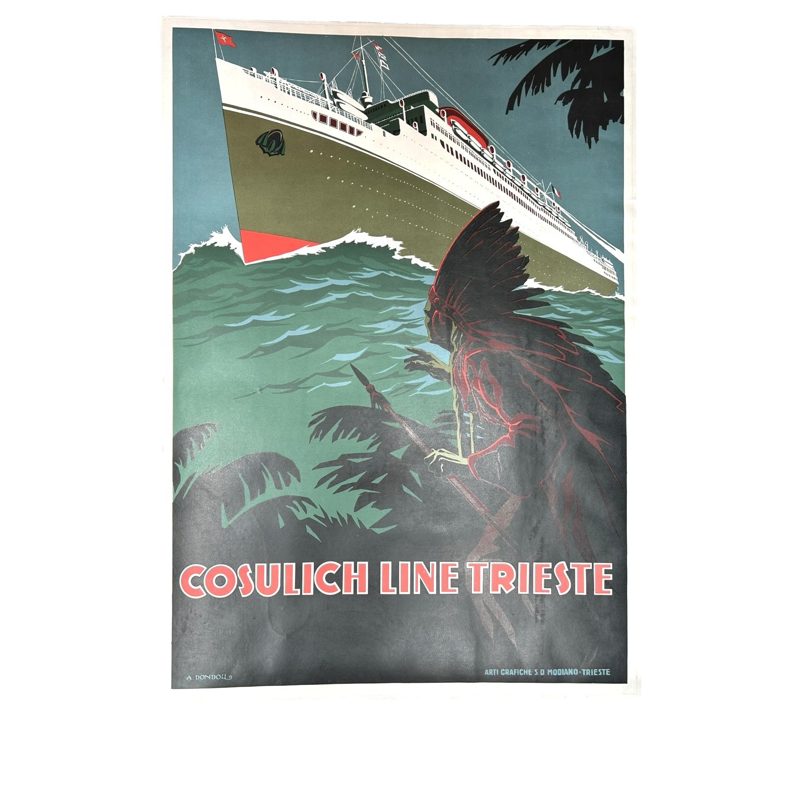 Antique Original Poster Italian Cosulich Ocean Liner Line Trieste by A. Dondoli