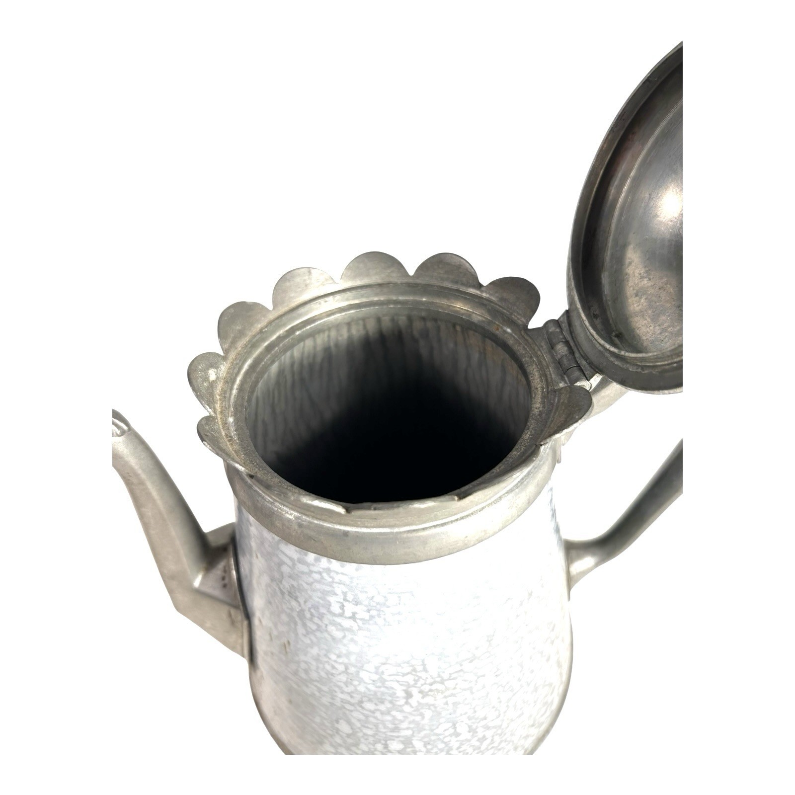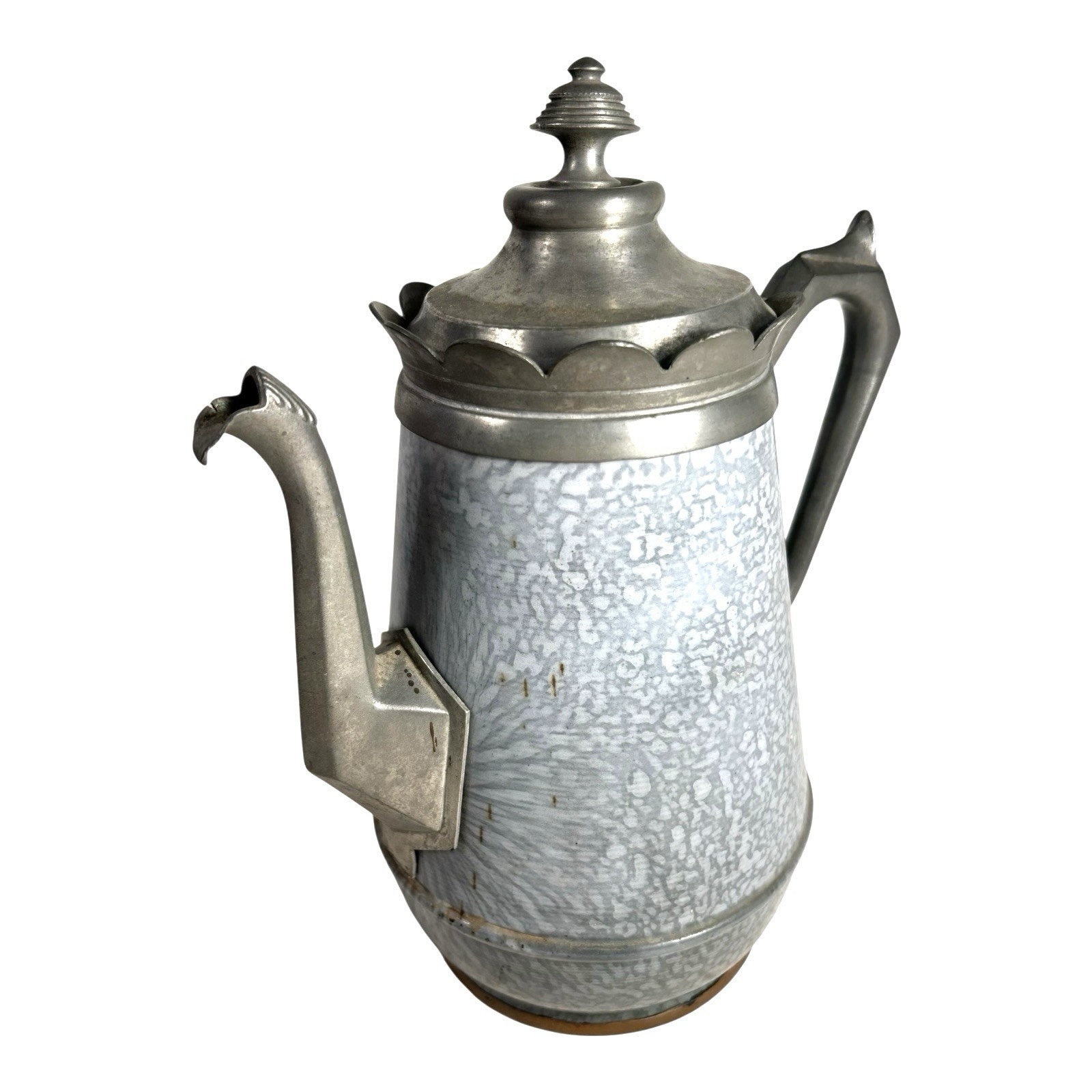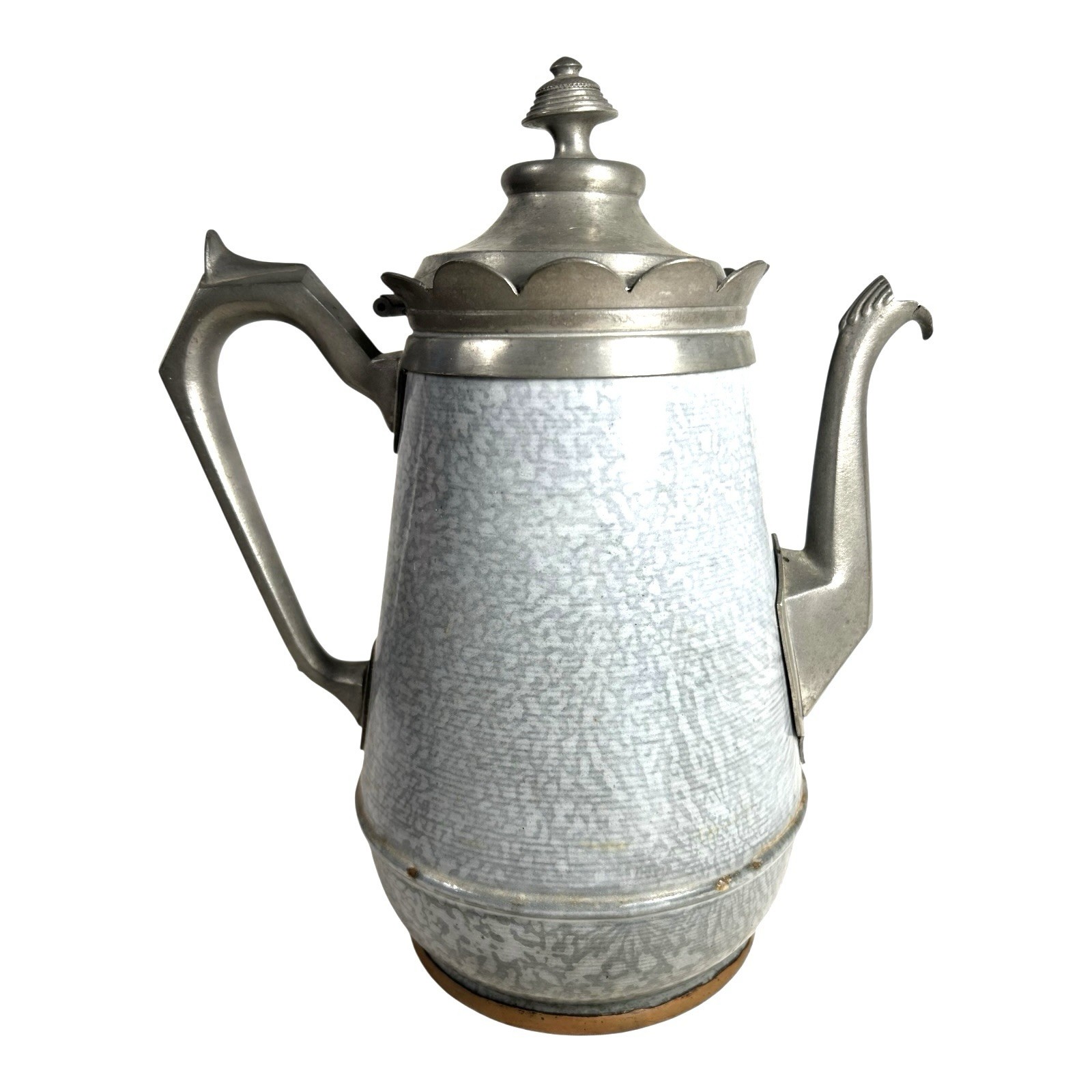 Antique Pewter Trimmed Grey Graniteware Teapot