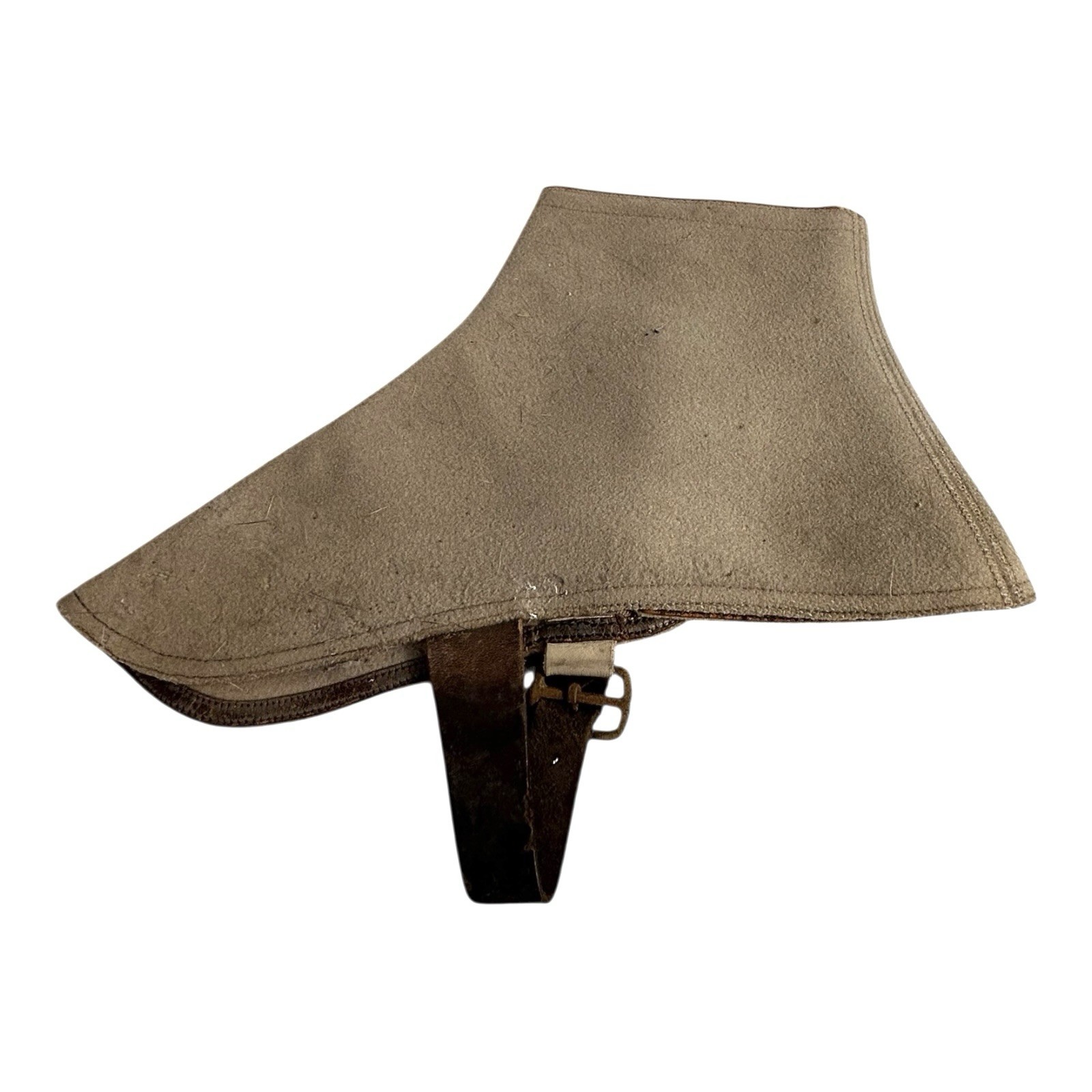These antique World War I era wool boot spats date to the height of the Great War and reflect standard military uniform accessories used to protect lower legs and footwear from mud and debris. Made from durable wool with period-correct construction, they carry honest wear consistent with age and service, offering strong historical presence for collectors of WWI militaria or early 20th century military clothing.