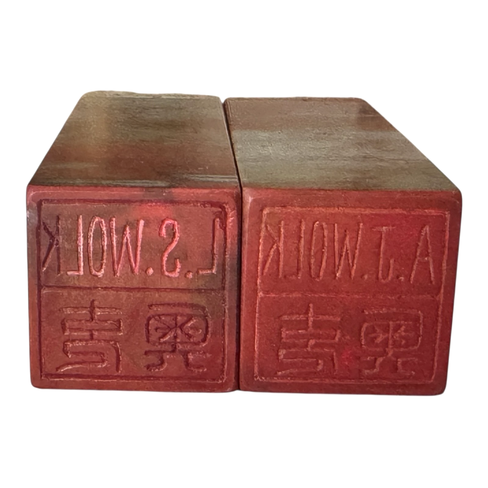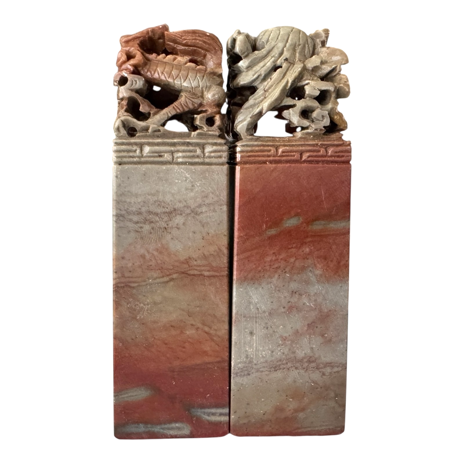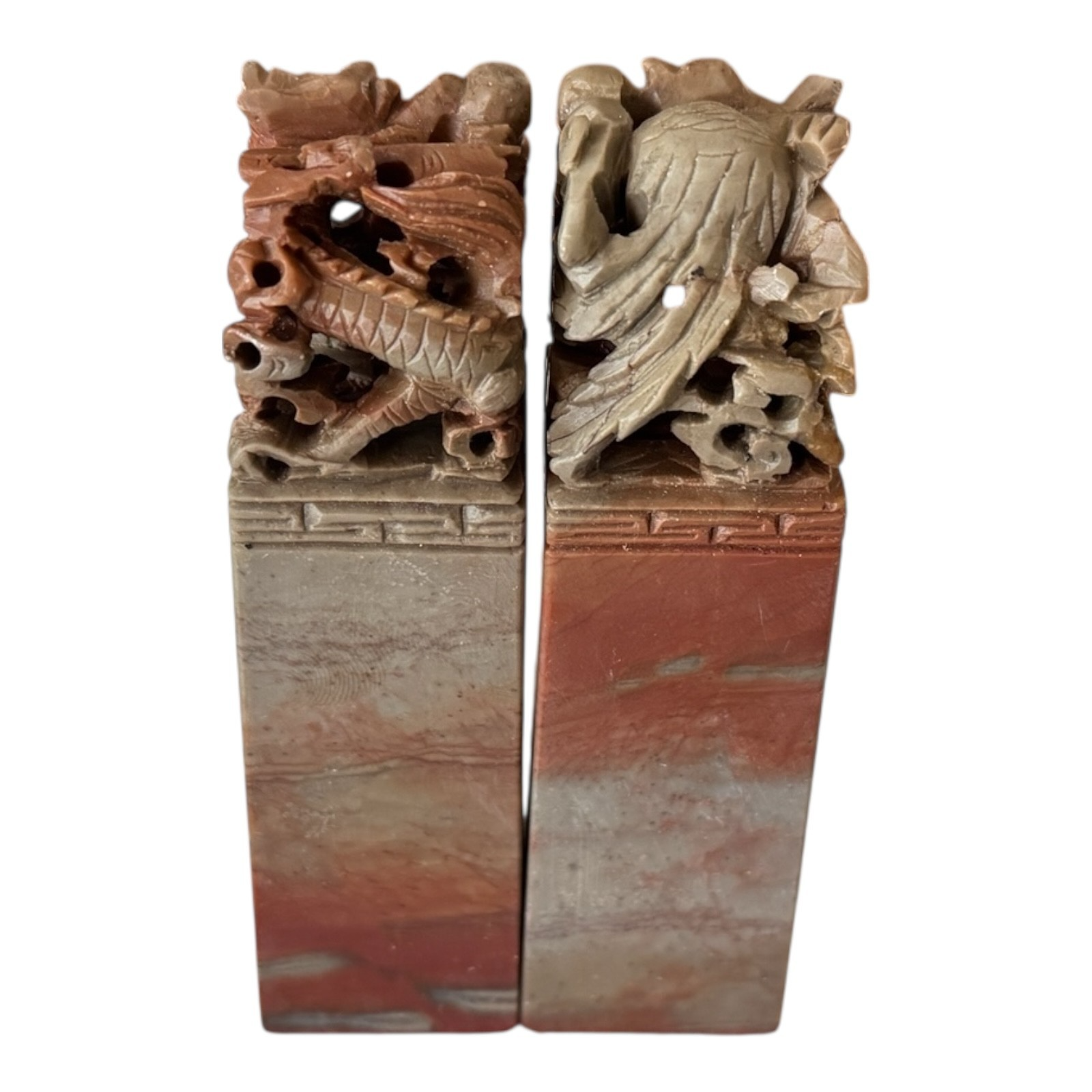 Vintage Chinese Hand Carved Soapstone Seal Stamp Pair in Box – Dragon & Phoenix
