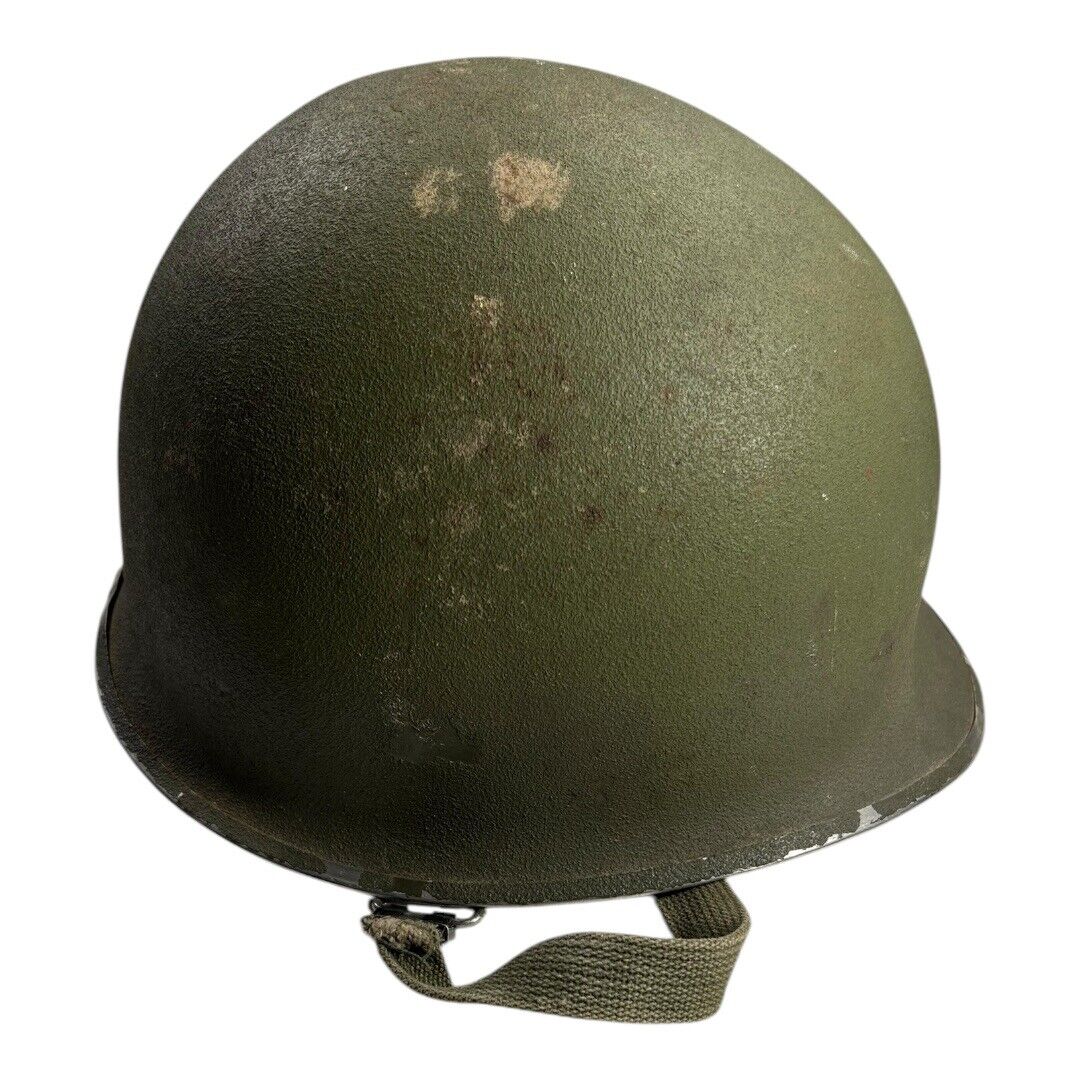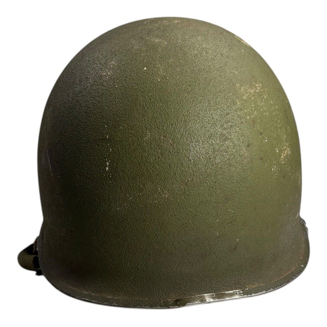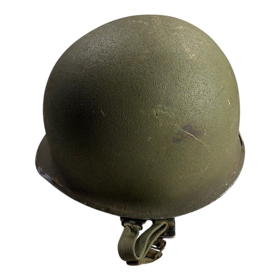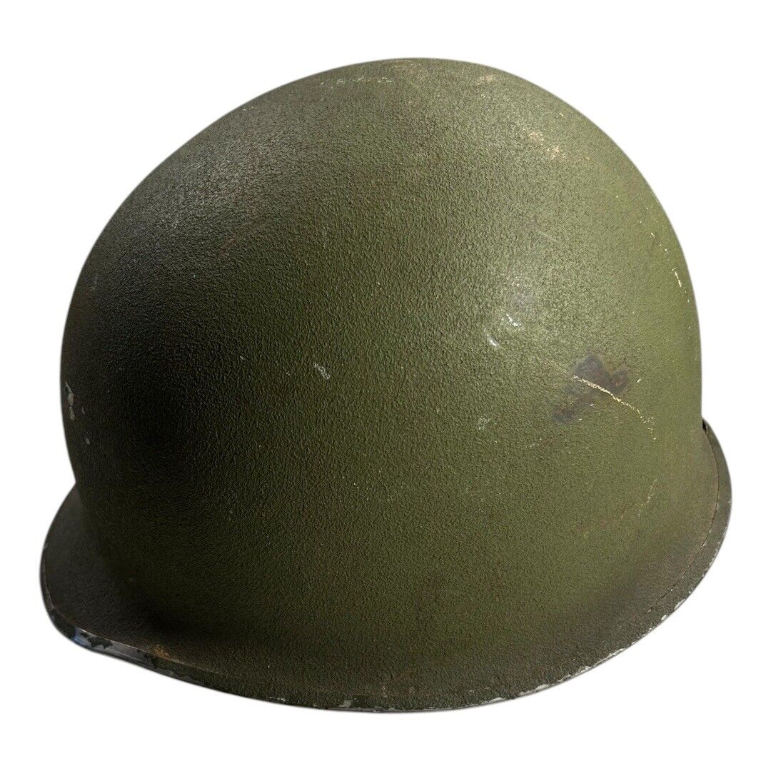 This vintage Front Seam Airborne Special Forces M-1 Helmet, dating to circa 1968, is an iconic piece of U.S. military gear from the Vietnam War era. Measuring 9.25 inches side to side and 11 inches front to back, the helmet features the classic front seam design with its distinctive silhouette, favored by paratroopers and elite Special Forces units. These helmets were built for durability in combat conditions and often carried unique battlefield wear. A compelling and authentic addition for military collectors or those interested in Vietnam War history.