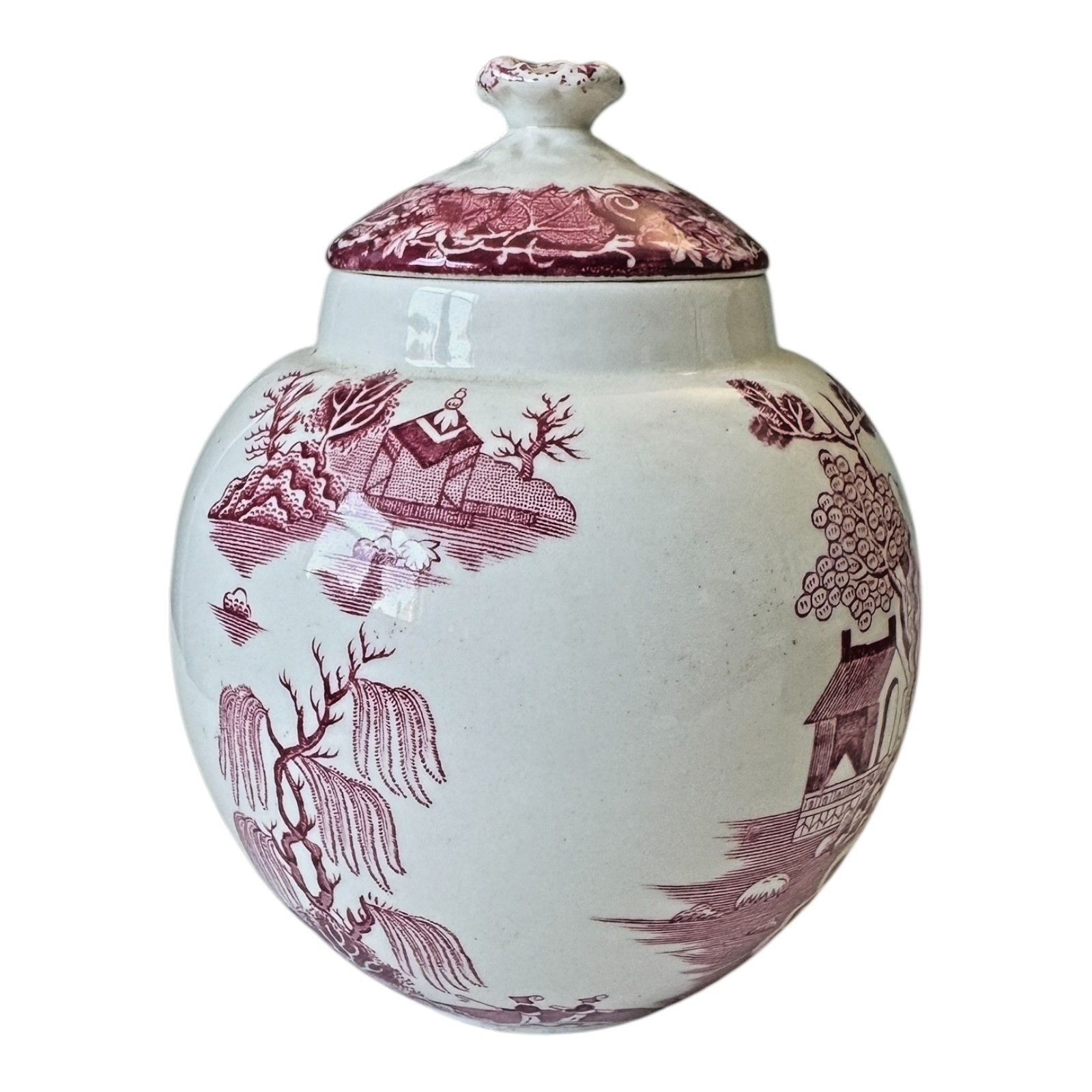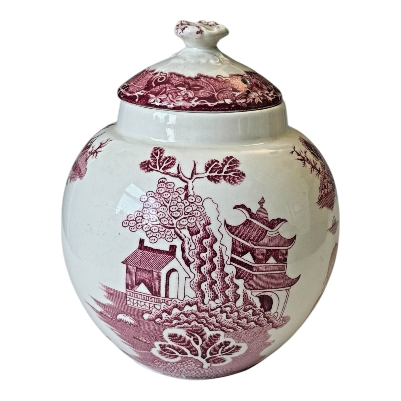 Vintage Mason’s Ironstone Lidded Tea or Ginger Jar – Red and White Willow Design