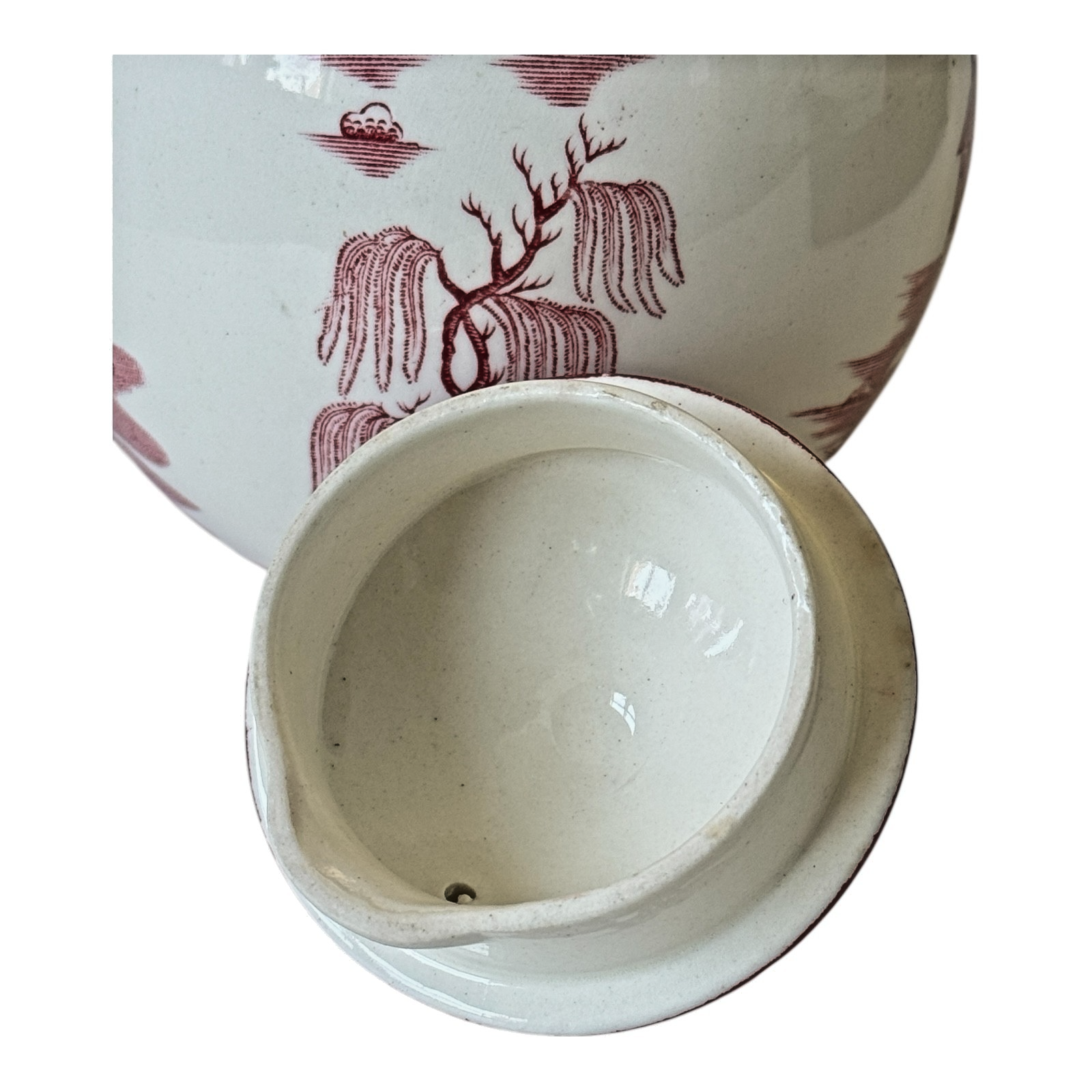 This vintage Mason’s Ironstone lidded jar showcases a vibrant red and white Willow design transfer, executed in fine detail over a crisp ironstone body. Originally made under license for R. Twining & Co. of London, the piece exhibits the classic blend of English charm and functional elegance. Its generous lid and stout form make it a handsome addition to tea and spice collections alike.
