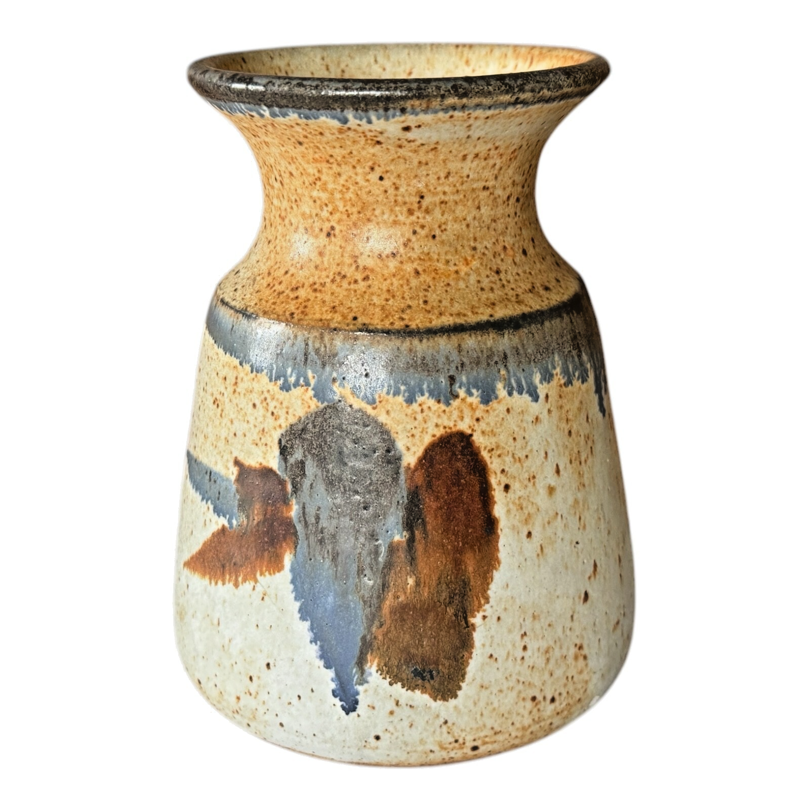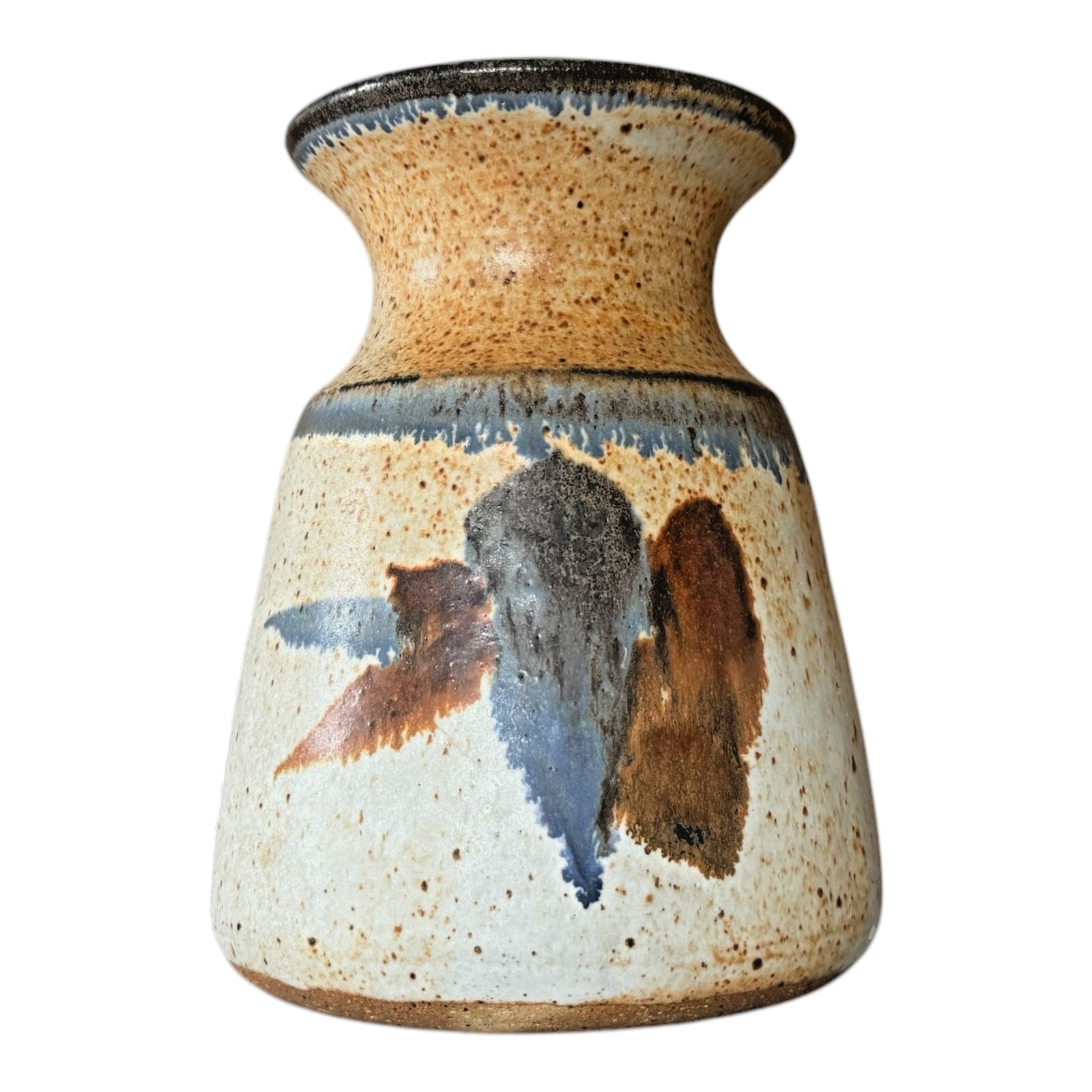 Vintage Michael Cohen Studio Pottery Blue Brown Glazed Stoneware Vase – Signed